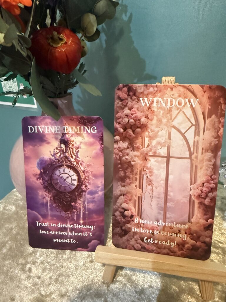 神聖なタイミングを信じなさい。愛は、そうなるべき時にやってくる)」というメッセージ