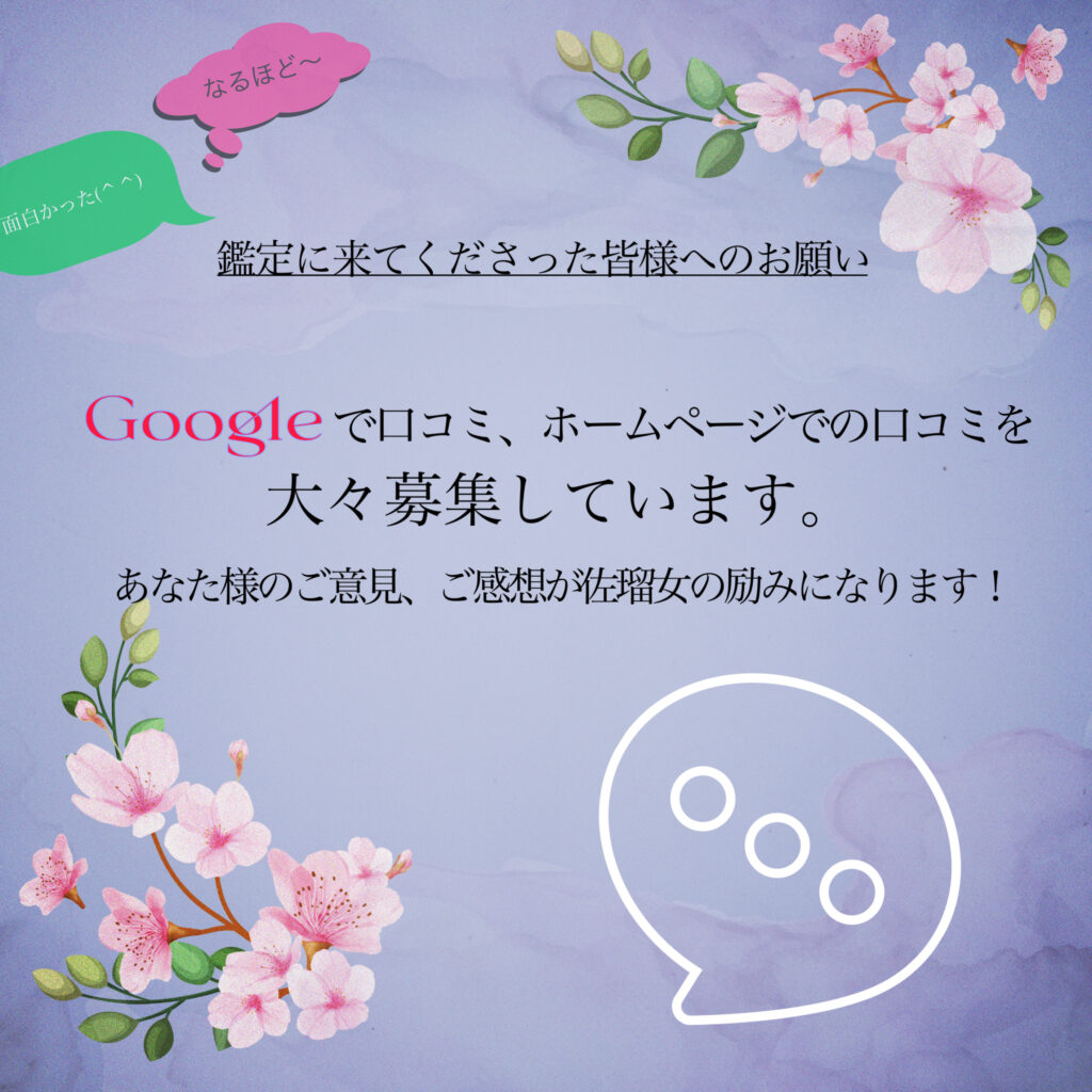 Googleやアゥルタームのホームページへの口コミは、初めてのお客様には安心してご来店いただける大きな判断材料となるとともに、しばらくぶりの方には、久々に占いをしてみようと思われる大きなきっかけになります。