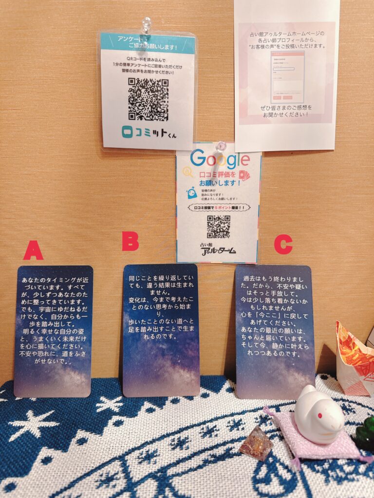 初めての占いで緊張してましたが、楽しかったです。