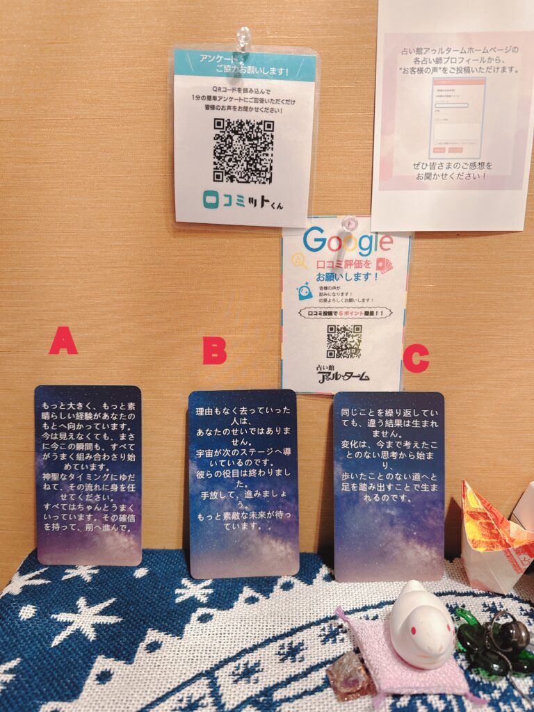 本日はありがとうございました。T様の初めての占いに携われて光栄です。また何かございましたら、お気軽にご相談くださいませね。