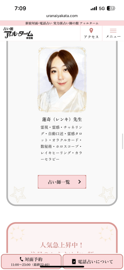 新宿対面・電話占い 実力派占い師の館 アゥルターム