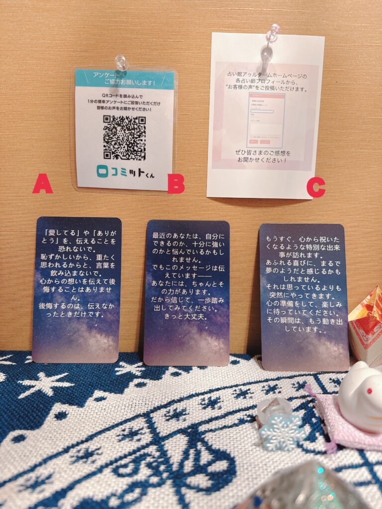 初めての占いで緊張してましたが、楽しかったです。