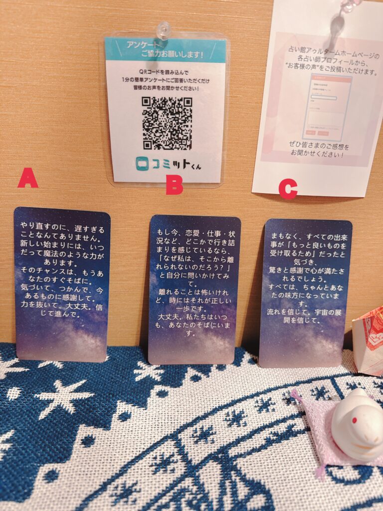 初めての占いで緊張してましたが、楽しかったです。