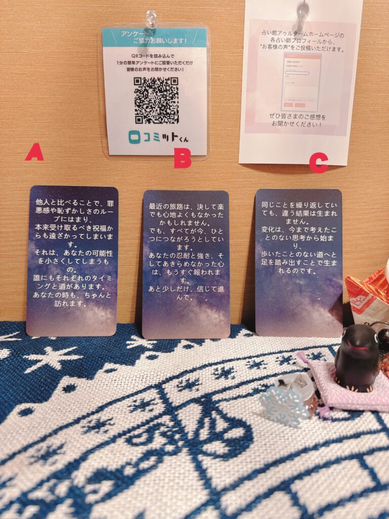 初めての占いで緊張してましたが、楽しかったです。