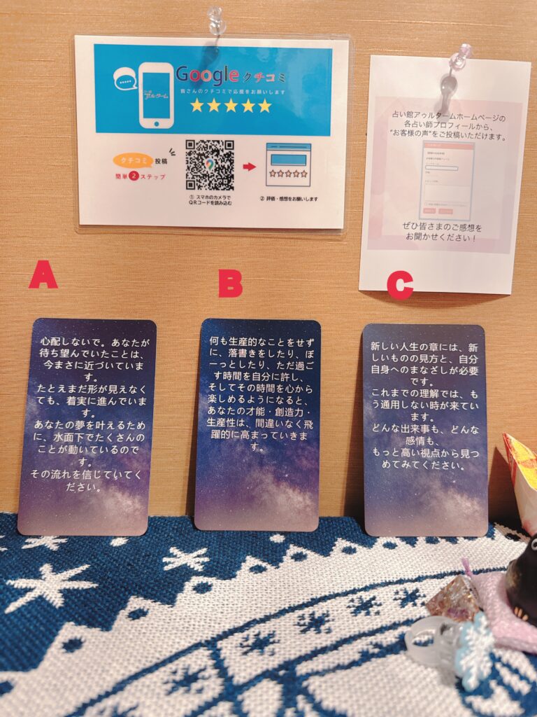 初めての占いで緊張してましたが、楽しかったです。