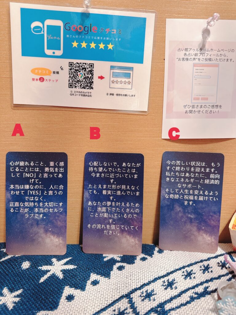 初めての占いで緊張してましたが、楽しかったです。