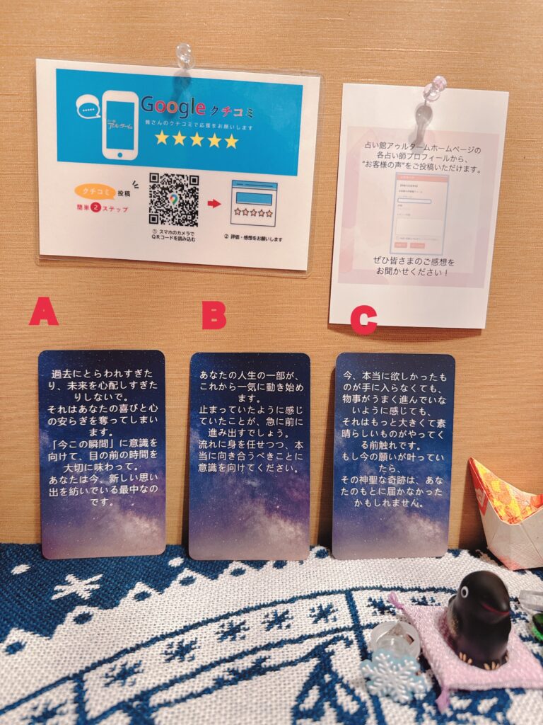 本日はありがとうございました。T様の初めての占いに携われて光栄です。また何かございましたら、お気軽にご相談くださいませね。