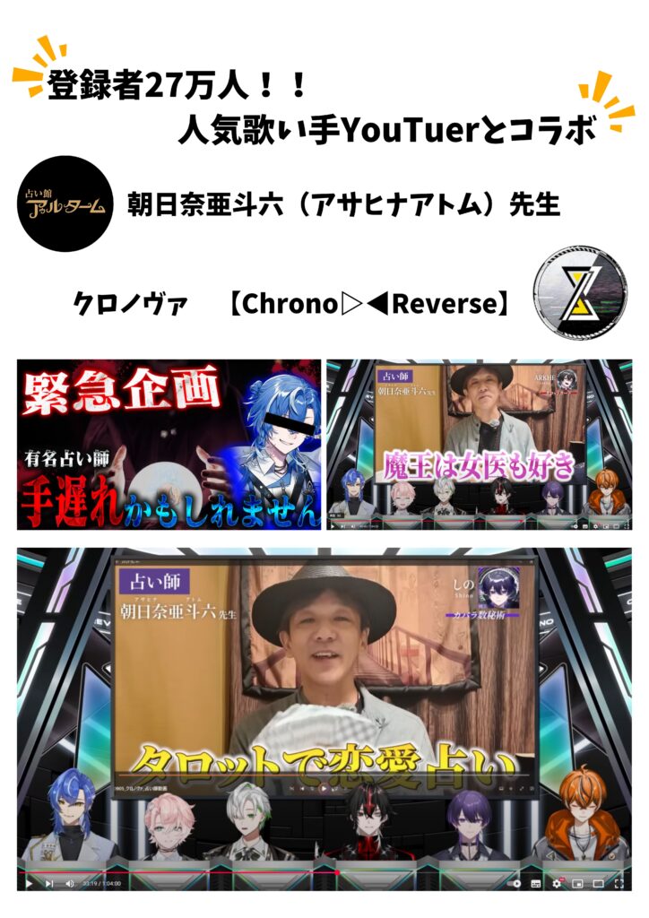 朝日奈亜斗六先生がYouTube「クロノヴァ【Chrono▷◀Reverse】」の皆様とコラボしました!